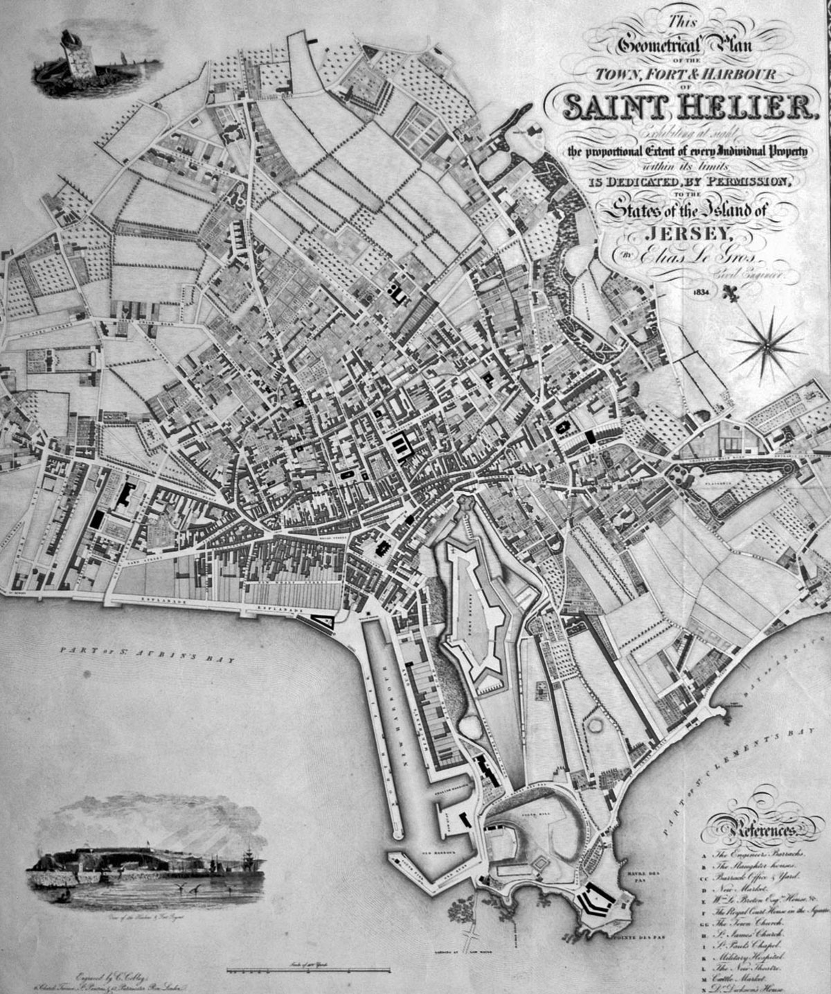 1834 Le Gros map of St Helier in detail
