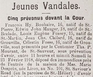The boys in question were François Henri Bouhaire, Edwin John Mauger, Louis Eugene Jean Fossey, Jean Charles Chilard and Celestin Louis Fosse. They were arrested after a night of destruction carried out between Saturday and Sunday, 23- 24 February.