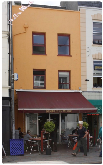 No 4 is the two-bay building set back from the Oxo sign on No 3 in this 1940s photograph