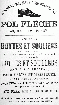 They had left by 1861 when Thomas Luce (1821- ) was a boot and shoe maker at No 40, living with his wife Ann (1823- ) who came from England, and employing 12 men. Ten years later he was employing 25 men, but by 1874 he had moved away and the premises were home to Pol Fleche, another boot and shoe business, run by Frenchman Honore Pol (1827- ) and his wife Reine (1821- ). They were in business at No 40 until at least 1895, although there is no sign of them after the street was renumbered.