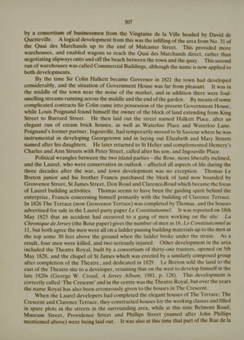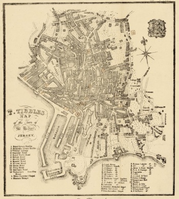 - ↑ The origins of the names of some St Helier streets, notably in the Charles Street, Ann Street, Philips Street area, as given in this article, are disputed by some researchers