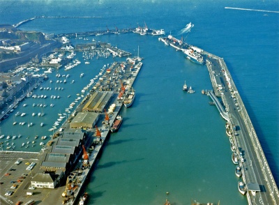 A mailboat - Caesarea or Sarnia - departs through St Helier pierheads