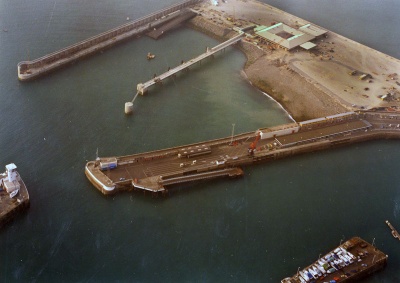 St Helier Harbour with the New North Quay across the centre