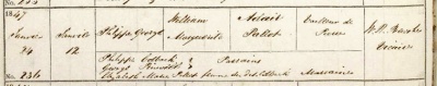 Baptism record of Philippe George Adair in St John on 12 January 1847