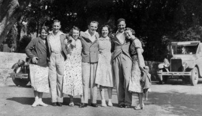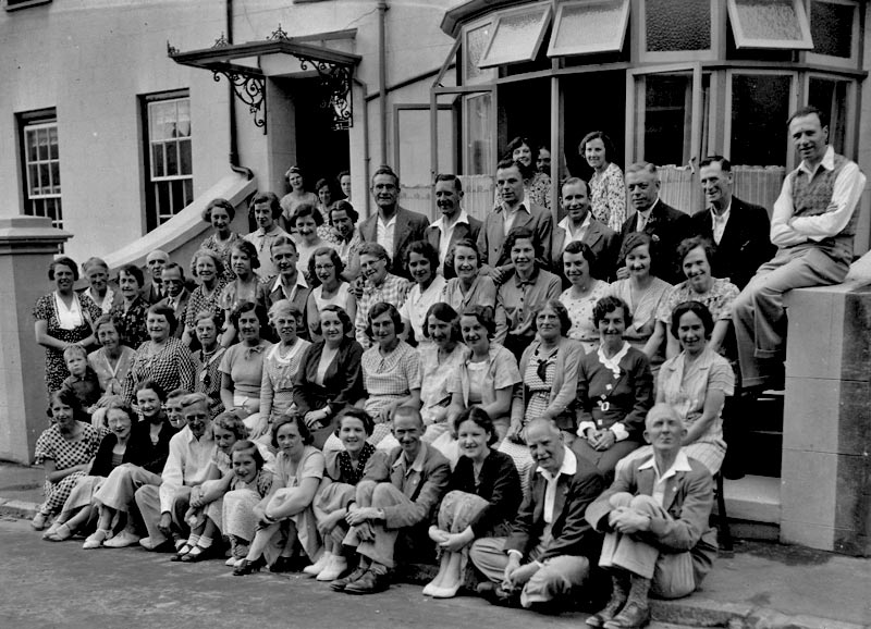 This album of photographs shows a group of holidaymakers in Jersey in the 1930s. The party stayed at the Sarum House Hotel, and the large photograph shows all the guests of the hotel posing on the front steps for what was a traditional holiday photograph at many hotels in the pre-war era.