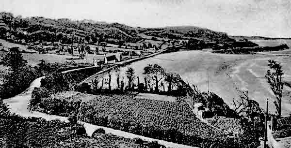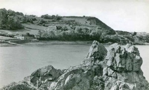 This early photograph shows the extent to which the cliff face has been eroded today. The field in the foreground no longer exists