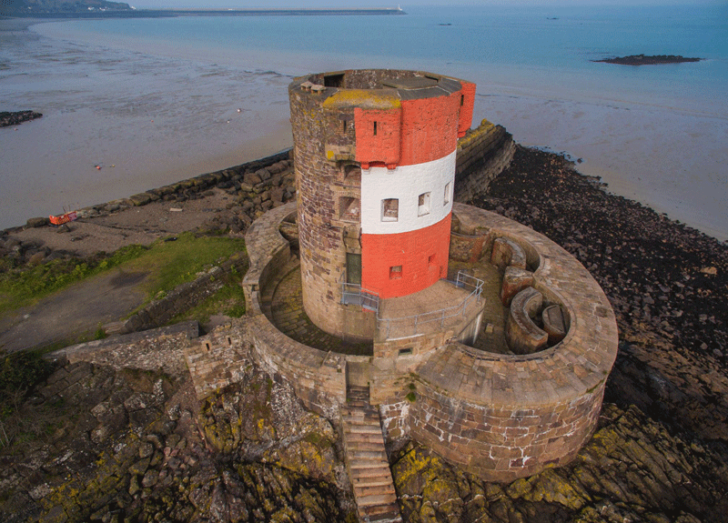 Archirondel Tower stands on the stub of the breakwater which was intended to form the southern arm of a naval harbour at St Catherine.