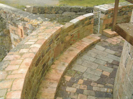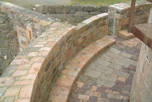 - "Access to the upper level is now via a wooden companionway stair, although originally it was via a stair set in a niche within the thickness of the external wall. The upper level is a brick vaulted room similarly designed with a circuit of gun loopholes with small windows above. There is a fireplace.