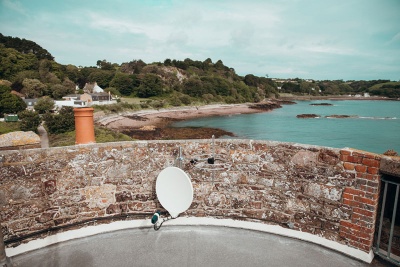 - "Split over four levels with a large terrace at ground level and a roof terrace overlooking the tranquil bay of Archirondel, the Tower is great for those looking for adventure, with the sea on your doorstep. Inside the Tower the ground floor comprises of a beautiful vaulted-celling kitchen and dining area with a dining table for four. A very narrow spiral staircase takes you up to a sleeping area, with one double bed and two single sofa beds and then continues on up to the cosy living space with a log burning stove for winter evenings. The roof terrace, with views across the bay and beyond, is accessed from the living space via the staircase. The sleeping area can also be accessed using the external metal stairs."