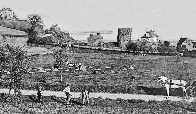 This delightful picture of St Catherine, probably taken around the turn of the 19th century, would be worth its place on this page for no other reason than that it shows a typical farming scene in Jersey over a century ago. But Jerripedia editor Mike Bisson had another reason for choosing this image, because it shows the same view that his parents enjoyed from their house when they retired to this part of the island in the 1980s. Little has changed today (apart from the construction, on the spot where the photographer probably stood, of the house in which the Bissons lived) and the field is still cultivated, albeit with tractors rather than horse-drawn implements. Also, as with many parts of the island, there are far more trees today than there were a century ago and this uninterrupted view can no longer be enjoyed