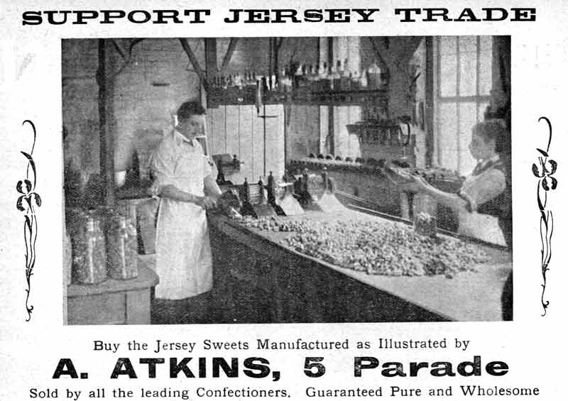 Jersey was a much more self-sufficient community a century ago than it is today, when activities such as sweet manufacturing have all but died out. At the end of the 19th and in the early 20th century there were a number of sweet manufacturers, among them A Atkins, who was based at 5 The Parade. A report on his business was published in a 1911 edition of Jerseyman, a weekly newspaper which launched that year.