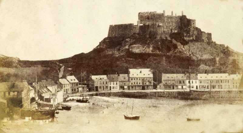 nothing between the section of harbour and Elizabeth Castle on the horizon, where the Albert Pier is now, other than the foundations of the pier appearing just above water level at low tide, and that dates the pictures to around 1850, as we suggested in March. That date has since been supported by several people whose knowledge of Jersey shipping and harbour constuction is much greater than our own. We are confident that these photograph were taken well before the stereo pair of the top of the Old Harbour, the Weighbridge and Esplanade, which was taken on 14 September 1866 by George Bashford, and a copy of which is in the collection of La Societe Jersiaise. We say ‘a copy’ because a fortnight ago another copy of the Bashford picture was on offer on Ebay, and was quickly sold. That image is regularly referred to as the ‘oldest outdoor photograph of Jersey’ which it most certainly is not, or ‘the oldest photograph of the town of St Helier’, which it might be, depending on one’s interpretation of ‘town of St Helier’. A picture of the Royal Square, which has been on Jerripedia since 2012, when it was believed to date from 1880, is now believed to have been taken in 1852, pre-dating the Bashford stereo pair, as does a picture of Victoria College, taken by Victor Hugo’s son Charles, in 1853.