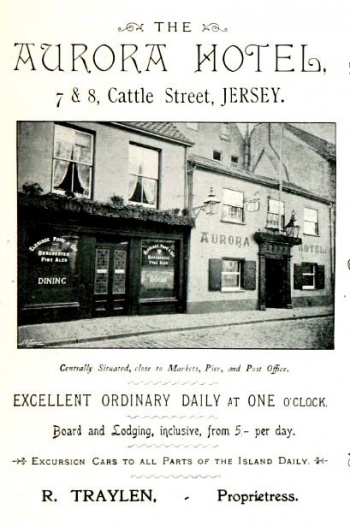 It is unusual to have two public houses next door to each other, and even more unusual if they are owned by the same brewery, but that's exactly what is to be found in St Helier's Cattle Street, where the Aurora Hotel and the Caesarea have been side by side for well over 100 years