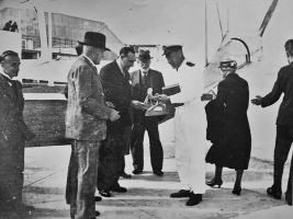 It is not generally known that flying started from the Airport in 1936, some months before its official opening. Here the forecourt entrance is given a wash and brush-up ready for the big day