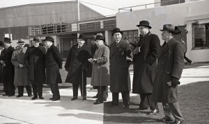 Official guests on an opening day tour leave the observation platform for the forecourt