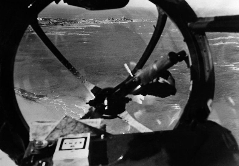 Corbiere viewed through the nosecone of a Heinkel111 in 1940