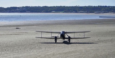 A biplane, Not part of Jersey Airways' fleet, on the beach at West Park