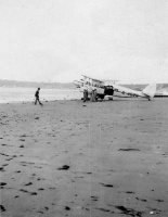 A biplane on the beach in 1934 before regular commercial flights started