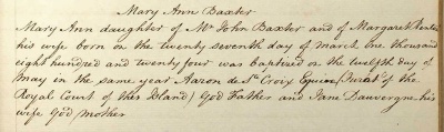Record of the baptism of Mary Ann Baxter in St Helier in 1824