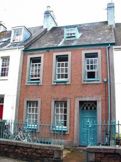 A fine early-mid 19th century townhouse, one of row of three similar houses, former merchant house facing St Aubin's bay, retaining original features of architectural and historic interest including front door and sashes. Set back from pavement behind low wall with railings and small front garden.