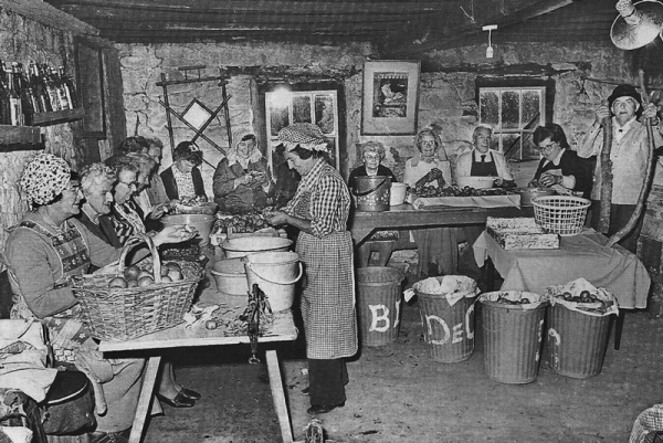 Black butter (Le nièr beurre) is not butter at all, but a preserve made from apples for spreading on bread. Its production starts on an autumn or winter evening - known as a black butter night. A large number of neighbours and family members would join the farmer's wife the day before, peeling and slicing a large quantity of apples.