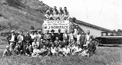 An outing for staff of the St Aubin business of W J Boniface. This was builder Walter John Boniface, who was in business with his son Harvey Walter. We have not been able to establish when and where the photograph was taken