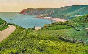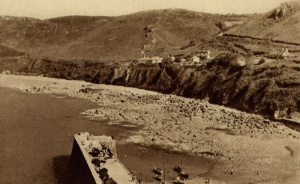 It is not known how this bay got its name, which means 'goodnight', but it was already known by that name in 1150 when Guillaume de Vauville gave the Chapel of Ste Marie in the parish of St John to the Abbey of St Sauveur Le Vicomte, and the King, in confirming this gift, used the Latin name de Bono Nocte.