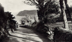 A horse and rider climb the narrow lane up from the bay which is now a main road