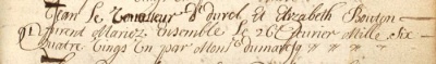 The record of the marriage of Elizabeth Bouton to Jean Le Tourneur in St Helier in 1679