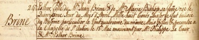 The marriage of William Brine and Jeanne Le Quesne, who were the first couple to have children baptised from 1767, is not recorded in Jersey.