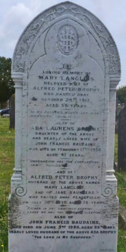 Brophy gravestone in Mont a l'Abbe cemetery