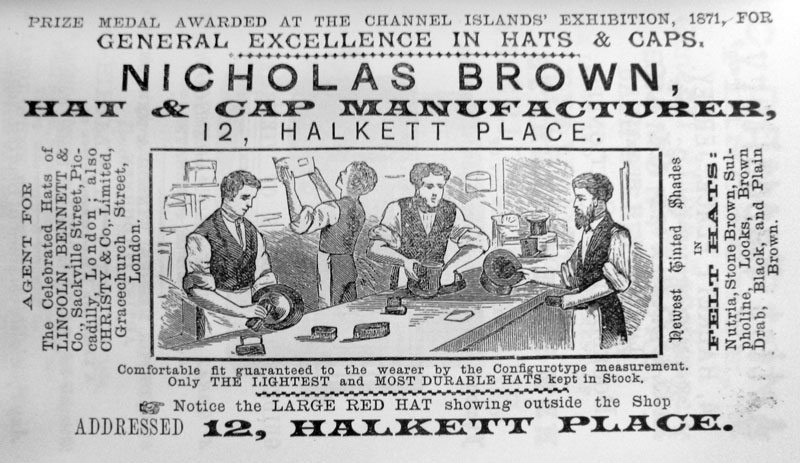 A 1905 advert for chimney sweep William Harry Brown (1863- ), who was shown in the 1901 census living at 47 Hill Street with his wife Harriet Alice, nee Wheadon, brother Albert, and children Harriet, William, James, Flora, George and Reginald. William snr and Reginald served with the Royal Jersey Garrison Battalion during the Great War and Reginald emigrated to the USA in 1919, marrying Gladys Copley in about 1930, having a son, also Reginald, and dying in Norfolk, Massachusetts in 1977. William Harry's father, William Henry Brown, was also a chimney sweep