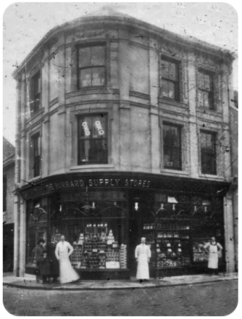 W R Renouf had an ironmonger's shop at 22 Burrard Street early in the 20th century. The building has long since been replaced by a modern brick shopfront. However, this building is an exception on this side of the street, and just to the right, No 26 (Big Maggy's Coffee Shop) and 28 (Brown's Antiques) still have largely original shopfronts. There are many other fine Victorian facades along both sides of Burrard Street, and an unusual single-story shopfront next to Waterloo Lane