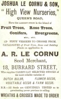 Josue Le Cornu advertised plants for sale at his shop at No 1 in 1870