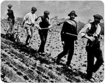 Banking potatoes on a steeply sloping côtil in the 1920s