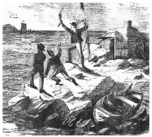 Unfortunately they had chosen the end of October to make their escape and, as they set out, the weather turned rough, forcing them to take shelter on the Écréhous. Once they had landed, they sought refuge in one of the fishermen’s huts and remained there for two days with no food until they were seen by some fisherman who passed their temporary shelter.