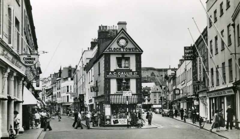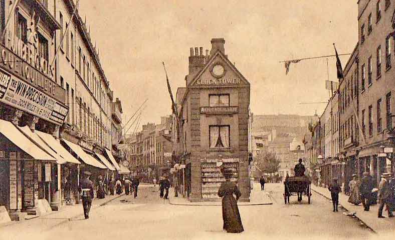 To the west of Charing Cross was undeveloped sandy land, stretching down to the sea. The old town wall ran from here to the south of Broad Street, which was known as La Grande Rue, because it was the main thoroughfare to the Royal Square. The other street leading into the town from Charing Cross, King Street, barely existed in the early days of the development of St Helier. Today it is the island's main shopping street; then it was a back street, appropriately known as Rue de Derrière.