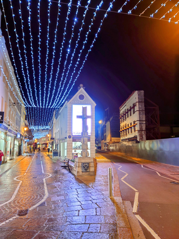 La Croix de la Reine was erected at Charing Cross to commemorate the Queen's Silver Jubilee in 1977. It takes the form of an abstracted four-armed cross carved, almost encrusted, with views and symbols of St Helier. The granite stones for the new cross were lifted into place by crane on 3 March 1978 and the cross was unveiled on the 19th.