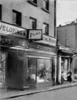 Picture from about 1920 by Albert Smith showing A Quenouillere's shop on the corner with Pitt Street offering a strange combination of jewellery and bicycles