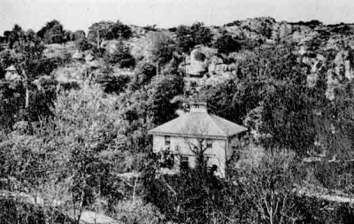 Curtis started work on La Chaire almost immediately, although he did not move permanently to Jersey until 1852. On the south side of the valley he built a small square house under the cliffs shelter and began creating a series of paths and terraces leading to the summit. At the summit was a rocky outcrop, where during the Napoleonic wars a gun battery had been built. This outcrop became known locally as the "Pulpit" rock, and it is said that Curtis preached the gospel to his gardeners, toiling away on the slopes below him, from this point. Whether this increased their productivity no one knows, but the gardens of La Chaire certainly begun to take shape relatively quickly. Letters sent by Curtis to Hooker at Kew during 1841-42 talk about the planting of deep shelterbelts of æIlexÆ, (evergreen oak, Quercus ilex), at both the eastern and western extremities of the garden.