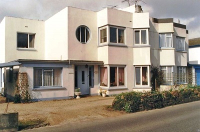 One of a pair of Modern-style houses designed by renowned Jersey architect Arthur Grayson in the 1930s. Part of an interesting group of Modern-style houses built in Jersey at this time. Pair with Grantown of Modern Movement houses at side of coast road.