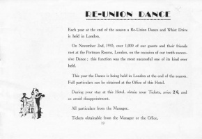 The guests obviously enjoyed their stay, and in 1935 1,000 guests and friends had attended the annual end-of-season reunion dance and whist drive in London, already in its tenth year.