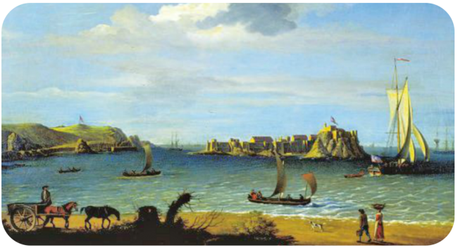 With his new ship he brought even more captured vessels back to the island, where the cargoes were secured for Sir George. No mean sailor himself, Sir George was impressed and on one occasion travelled across from the castle to St Aubin to marvel at the number of captured ship pennants flying from the mast of Amy's ship following a particularly successful voyage.