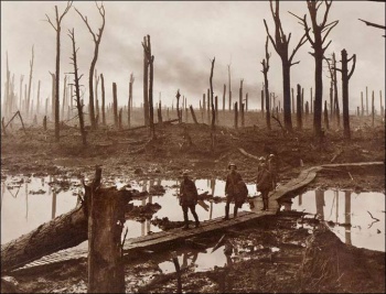 That dash will live long in my memory; every few steps we sank nearly to the knee in sticky mud, or found ourselves tangled in barbed wire, but my pal and I held hands so as not to lose touch with each other. How we got across, I really don't know. We could hear the crashing of shells directly ahead of us, and see the flashes as they burst, but to stop where we were would have been madness, so we went ahead, guided by the flashes of our own guns.