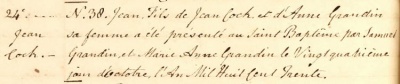 The surname is found from 1789 in St Helier baptism records. Ten children of William Cock and Jeanne Le Gros Bisson were baptised in the parish between then and 1803.