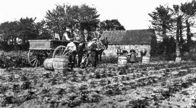The Cristin family of St Lawrence harvesting potatoes in about 1900