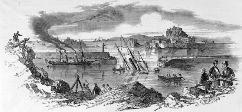 On 15 May, one month from the publication of this remonstrance, her Majesty’s steamer Cuckoo, Captain Dumaresq, justified its forebodings of danger. The Birkenhead, Queen’s steamer of 1200 tons, Captain Stevens, having anchored in the large roads on Tuesday evening, under the charge of Mr Gallichan, Queen’s pilot, with the depot 26th Regiment on board, from Queenstown, Ireland, for the Jersey garrison. The Cuckoo, on this station, proceeded to her early on Wednesday morning and took on board 300 of her troops, with whom she was steaming inwards Victoria Harbour at about half-past five o’clock, being at the time in charge of Mr Payn, Queen’s pilot, when her starboard bow suddenly struck upon the dangerous and unbeaconed rocks in question.