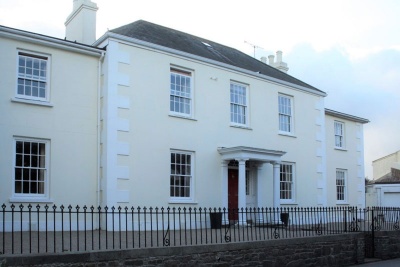 A well proportioned mid-19th century property in the classical style, retaining original features and contributing to streetscape character. Three-bay, two-storey detached property with single bay, set-back wings on either side.