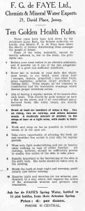 Thomas de Faye advertised a house near Grouville Church for sale in an 1860 advert in Chronique de Jersey