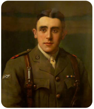 A striking portrait of Lieut. Edward de Faye, Machine Gun Corps, painted posthumously by John St Helier Lander
